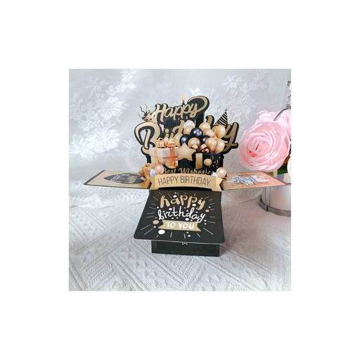 View full detailsMake birthdays extra special with this stunning three-dimensional black pop-up card! Crafted from high-quality paper, it features a handwritten mes...