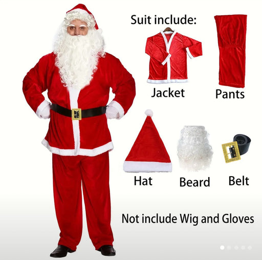 MegastoreNo reviewsOut of stockStep into the holiday spirit with this premium 5-piece Santa Claus costume set. Made from vibrant red pleuche and durable polyester, this adult-siz...