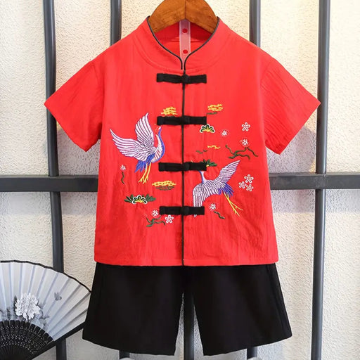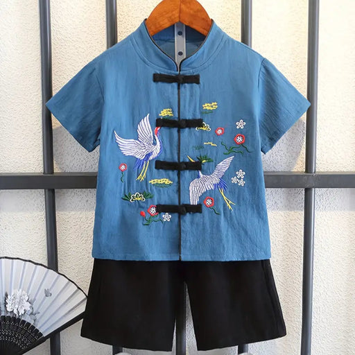 Boys Bird Embroidered Tang Cultural Two-Piece Set
