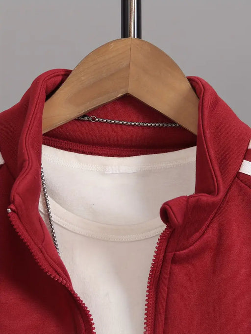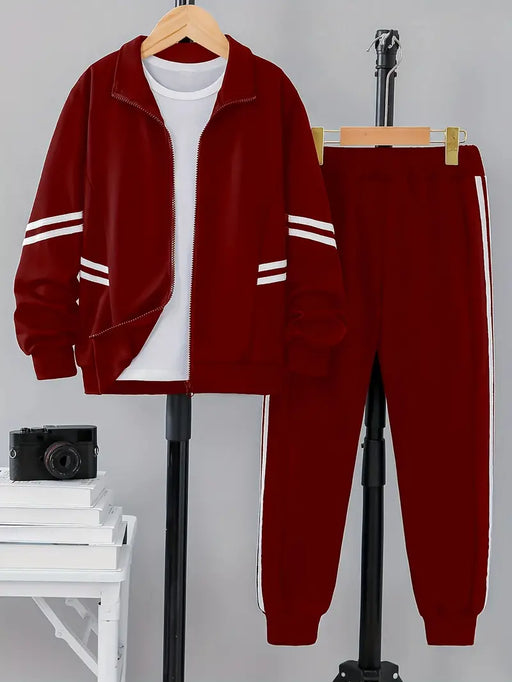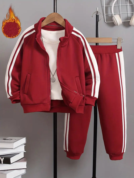 MegastoreNo reviewsOut of stockKeep your little one cozy and stylish with this bold red 2-Piece Set. This casual, loose-fit outfit features a drop-shoulder, zip-up jacket with ha...
