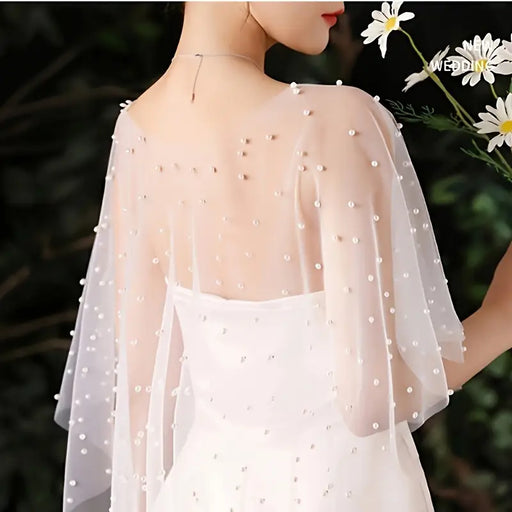 Bridal Faux Pearl Mesh Cape
