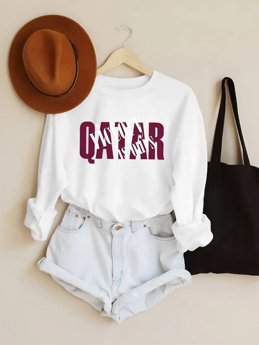 "Qatar" Letter Print Long Sleeve T-Shirt