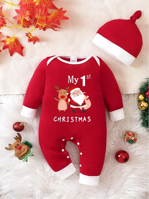 MegastoreNo reviewsLow stockCelebrate your baby's first Christmas in style with this adorable long-sleeve romper and matching hat, featuring a charming Santa and reindeer cart...