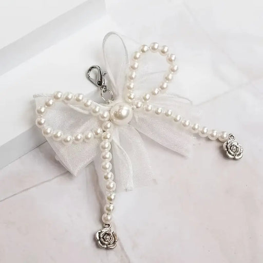 Silvery Lace with Pearl Bow Shoe Charms - 1 Pair