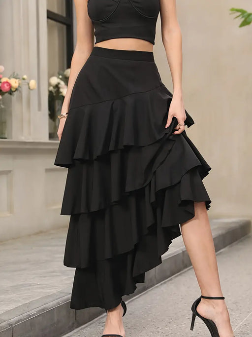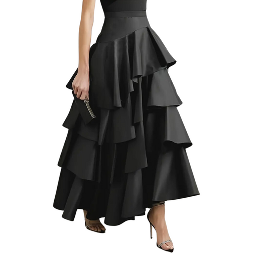 MegastoreNo reviewsLow stockElegant high-waist skirt designed for fall and winter. Made from 100% polyester, this long-length skirt features an asymmetrical hem and tiered ruf...