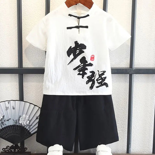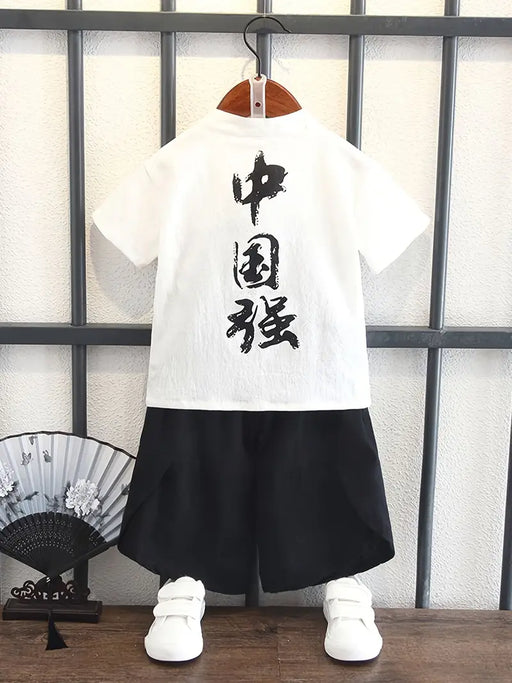 Boys White Hanfu Chinese Characters Cultural Two-Piece Set