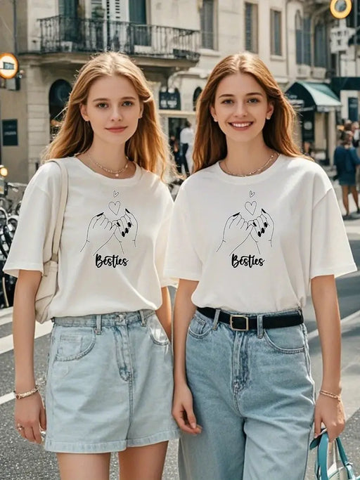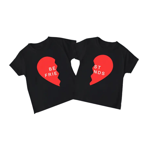 MegastoreNo reviewsLow stockShow off your unbreakable bond with this adorable 2-piece heart-shaped “Best Friends” T-shirt set! Designed with bold red heart graphics, these sho...