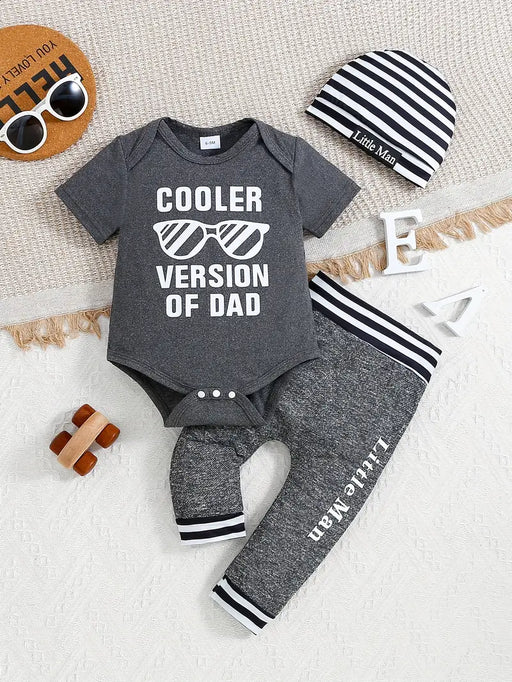 MegastoreNo reviewsLow stockTrendy 2-piece set with a cool sunglasses print. Includes short-sleeve bodysuit, hat, and pants for baby boys. Size: 6-9 Months Tops - Bust size: 5...