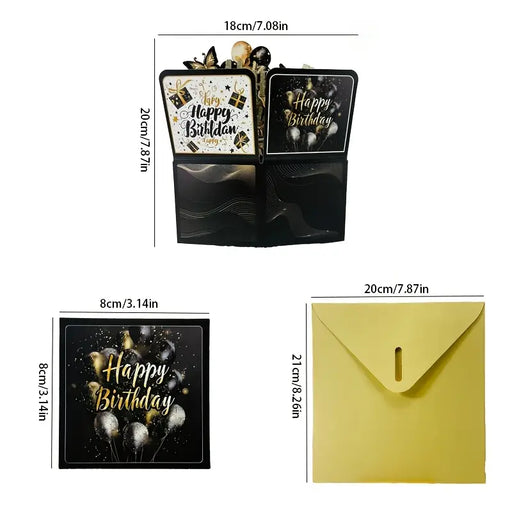MegastoreNo reviewsOut of stockCelebrate in style with the Glam Pop 3D Greeting Card! Featuring an elegant black and gold design with balloons and butterflies, this versatile pop...