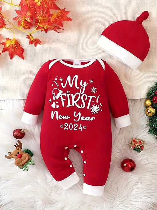 MegastoreNo reviewsOut of stockCelebrate your little one's first New Year in style with this adorable romper set! Featuring a long-sleeve, round-neck romper with a festive "My Fi...