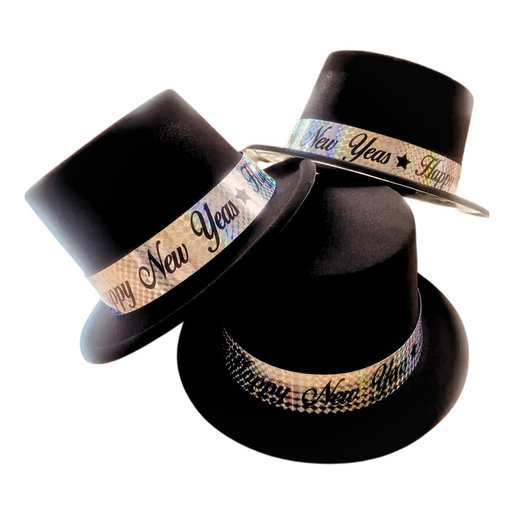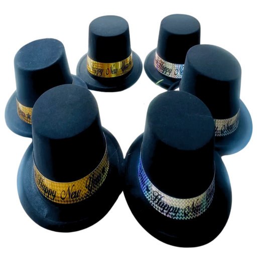 MegastoreNo reviewsOut of stockSet of 6 black "Happy New Year" top hats, perfect for New Year's Eve parties and celebrations. Versatile for all seasons: spring, summer, fall, an...