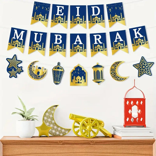 Moonlight Eid Mubarak Hanging Banner – Blue & Gold