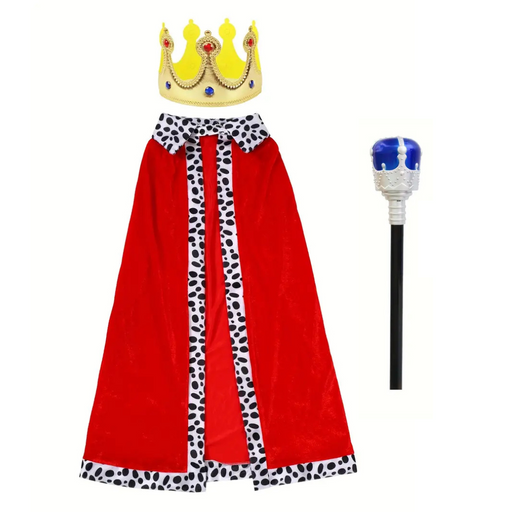 MegastoreNo reviewsLow stockThis set includes a stunning boys' king cloak, a princely cape, a majestic crown, and a royal scepter. Crafted from durable plastic, the scepter do...