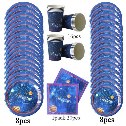 MegastoreLow stock119 pcs Space theme birthday party decoration Set Disposable tableware, 20 pcs Napkins, 16 pcs plates 7 inch 16 pcs cups,15 pcs cake toppers,24 pcs...