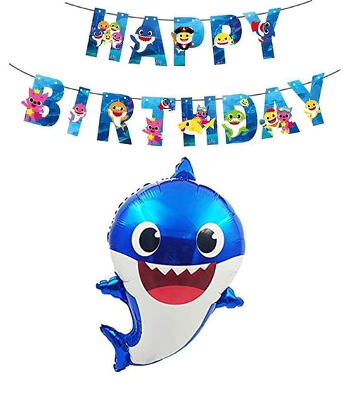 MegastoreLow stock8 pcs Baby Shark Party Decoration Set includes: 1 Set x Banner 1 x Table Cloth Set of 5 pcs x Spiral Banner 1 x Shark Balloon