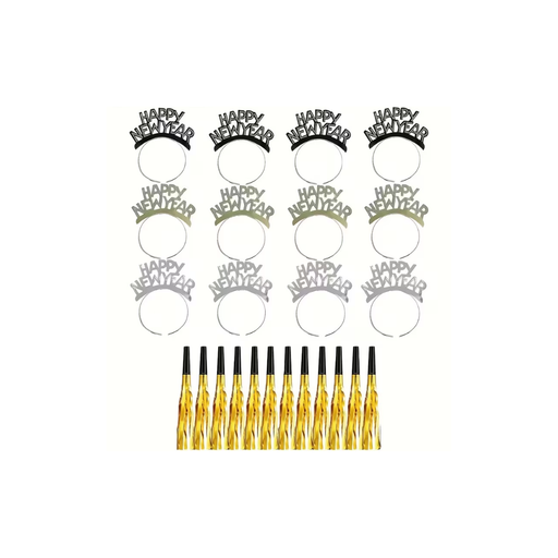 Happy New Year 2026 Party Set – 12 Headbands & 12 Noise Makers