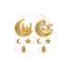 طقم ديكور رمضان ثنائي الأبعاد يتضمن لافتة معلّقة “رمضان كريم”، ولافتة باب “عيد رمضان مبارك”، بالإضافة إلى زينة حائط بتصميم قمر ونجمة وقلعة باللون الذهبي. مثالي لإضفاء أجواء إسلامية احتفالية على المنزل خلال رمضان والعيد.