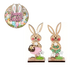 Festive wooden Easter décor set including 2 bunny tabletop decorations with floral accents and baskets, plus 1 matching hanger. No power needed—perfect for home décor, shelves, doors, and spring Easter celebrations