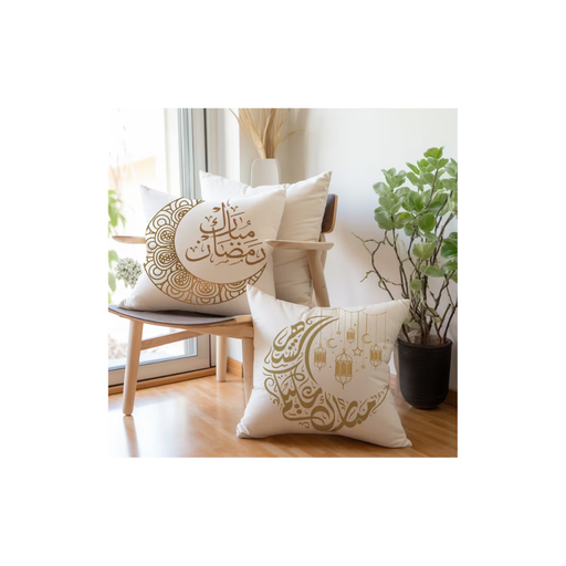 Ramadan Crescent & Star Pillowcases (2PCS) – White & Gold