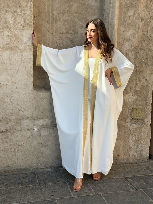 TurquoiseNo reviewsLow stockIntroducing the LAYAL Abaya: Crafted from crepe fabric, this free-size abaya features a 56-inch length and comes in stunning white with gold detail...