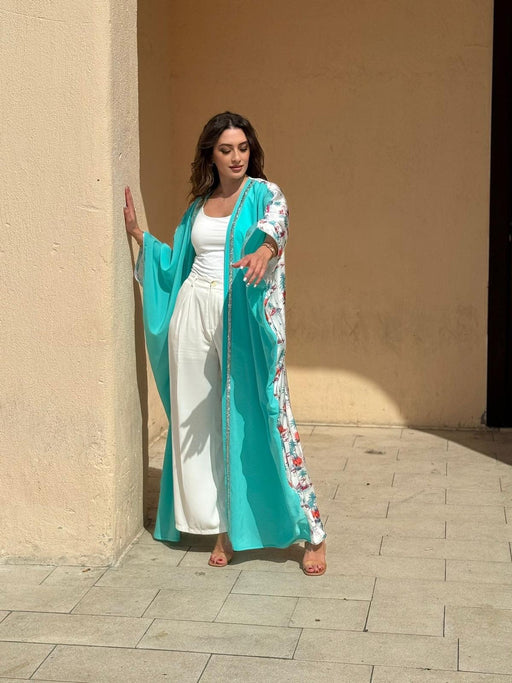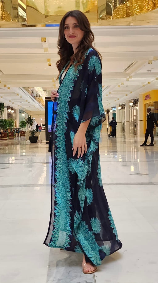 TurquoiseNo reviewsLow stockIntroducing the LILLY Abaya: Crafted from chiffon fabric, this free-size abaya features a 56-inch length and comes in a stunning dark blue and gree...