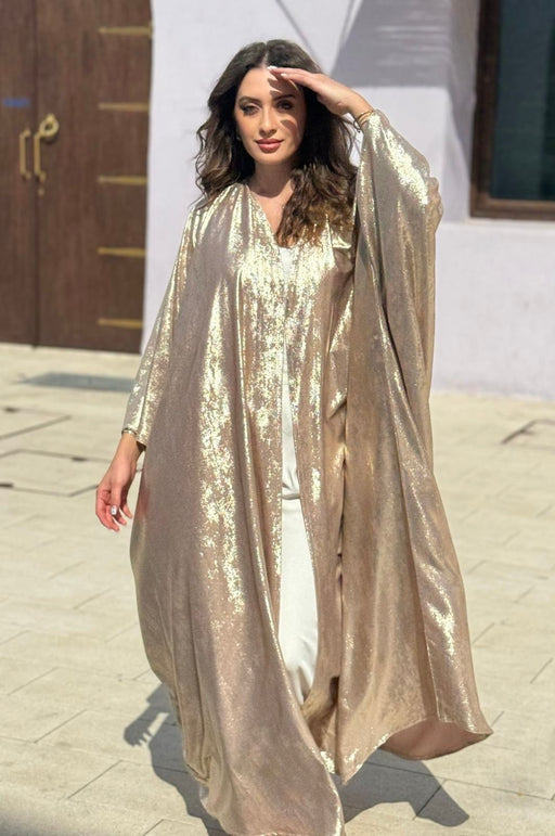 TurquoiseNo reviewsOut of stockIntroducing the THURAYA Abaya: Crafted from crepe fabric, this free-size abaya features a 56-inch length and comes in a stunning nude metallic colo...
