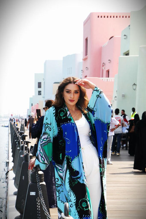 TurquoiseNo reviewsLow stockIntroducing the FAIRUZ Abaya: Crafted from luxurious silk fabric, this free-size abaya features a 56-inch length and comes in a stunning tiffany bl...