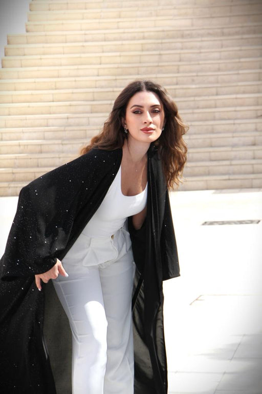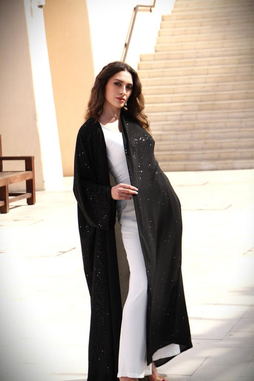 TurquoiseNo reviewsLow stockIntroducing the NAJMA Abaya: Crafted from light crepe fabric, this free-size abaya features a 56-inch length and comes in black with a sparkly desi...