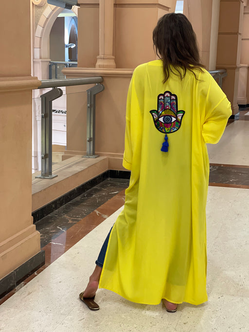 TurquoiseNo reviewsLow stockIntroducing the HAMSA Abaya: Crafted from light crepe fabric, this free-size abaya features a 56-inch length and comes in a stunning yellow color. ...